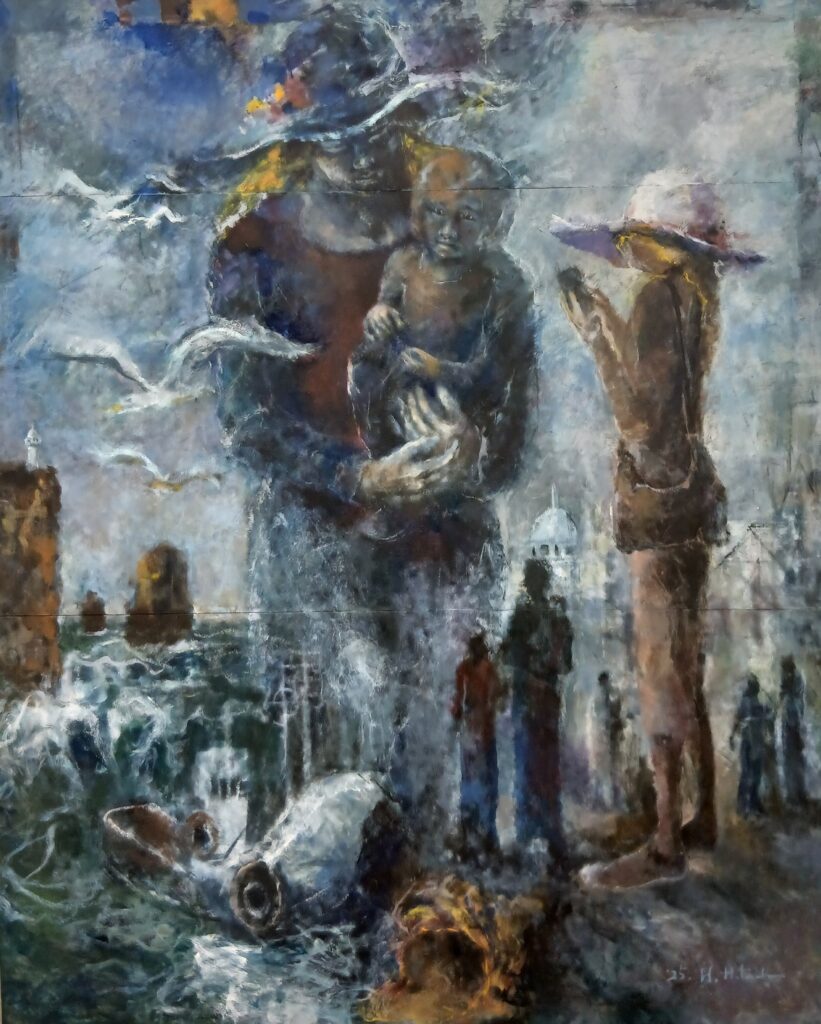 天然の港に聳ゆる母立像やがて大岩となり海へともどる